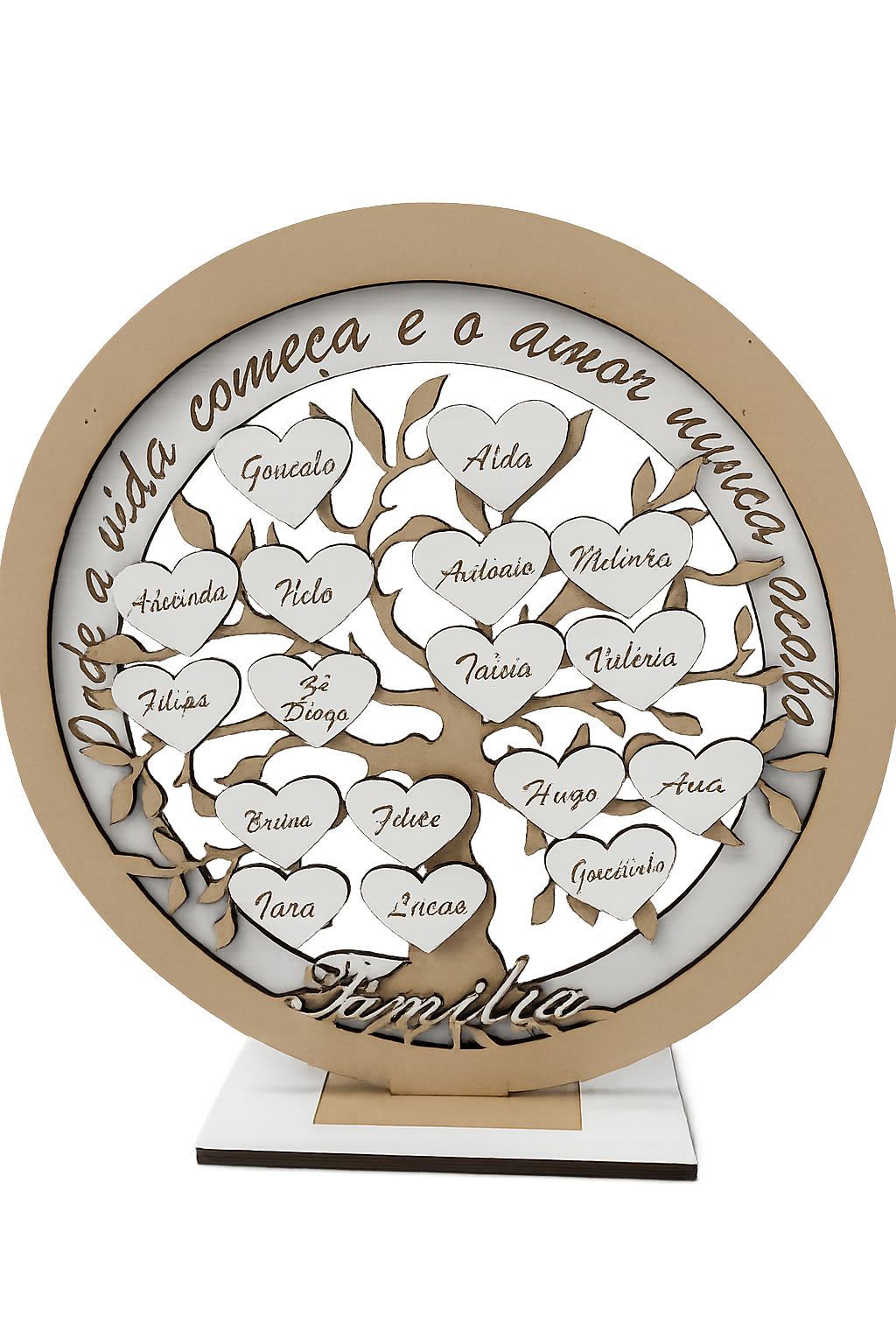 Árvore da Vida em madeira, decorativa e personalizável. Peça elegante, simbólica e ideal para oferecer ou decorar qualquer espaço. Descobre já.
